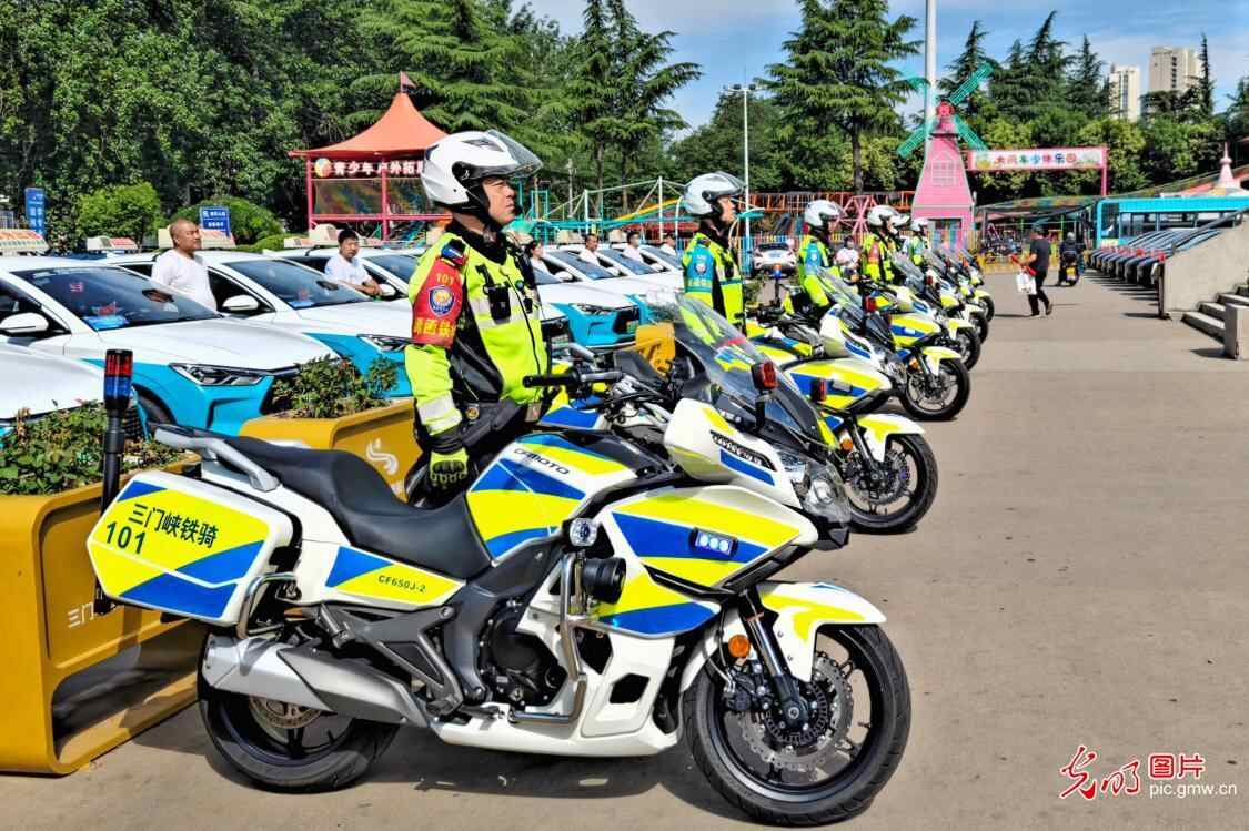 河南省三门峡市启动“任你乘风破浪,保你追逐梦想”第十五届爱心送考公益活动,交警铁骑、“爱心送考”车队整装待发。
