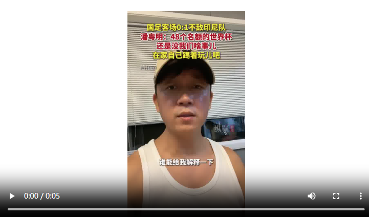 6月5日,国足客场0:1不敌印尼队,提前一轮告别美加墨世界杯。演员潘粤明发文:48个名额的世界杯还是没我们啥事儿,在家自己踢着玩儿吧~