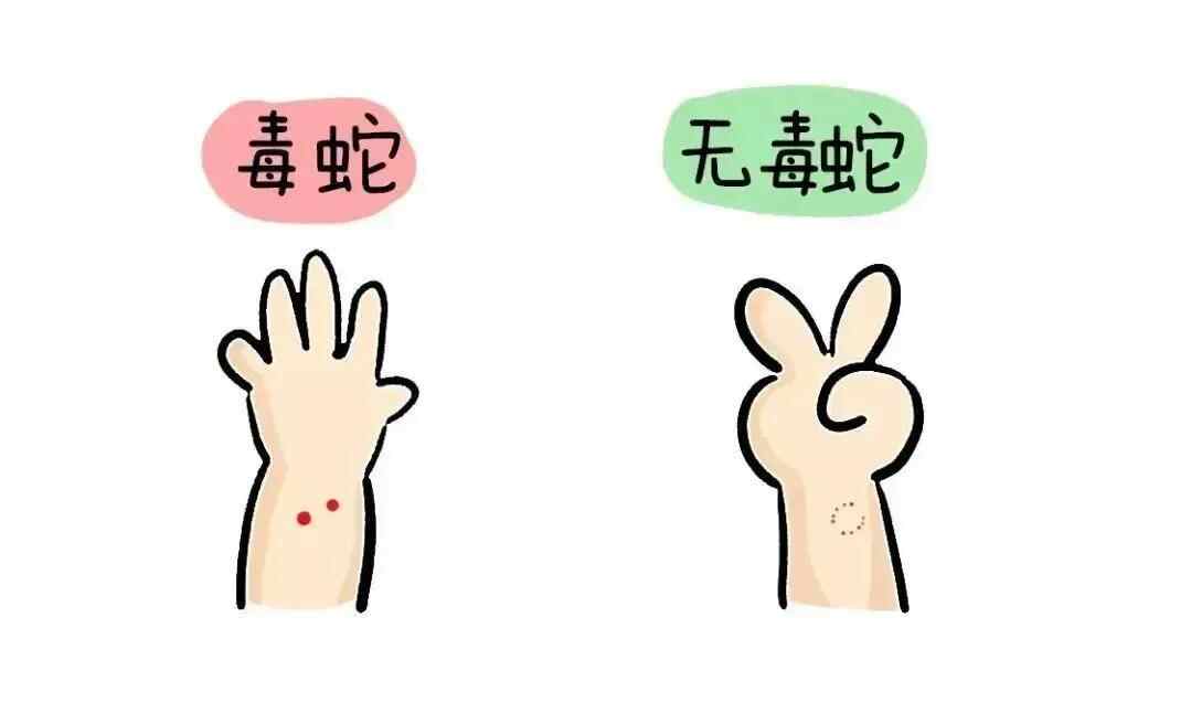 皮肤科袁丞达主任也提醒大家,如果被蛇咬,首先应该确定是否为有毒蛇。从伤口的痕迹可以做一些初步判断,无毒蛇咬伤后是一排两排或者三排四排牙痕,有毒蛇咬伤后是一颗两颗或者三颗四颗牙痕。