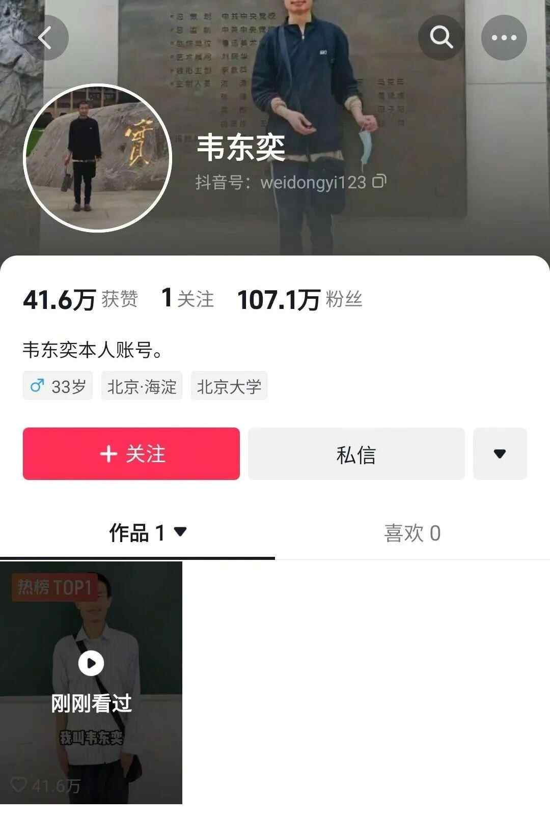 稍早前,抖音相关工作人员向记者透露,韦东奕开设的是实名认证账号,经过身份信息认证,这两天该账号遭到不少网友举报,“被质疑是顶替冒充,还以为是AI生成。”