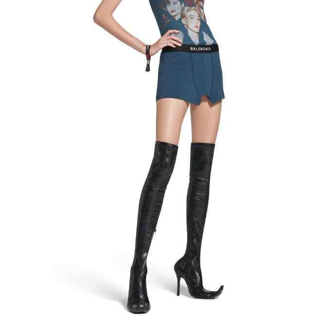 近日,巴黎世家推出一款售价高达4500元人民币的女款半身裙,这款亮相于2025秋季系列Look 50和Look 54的深蓝色弹力针织半身裙,因被调侃造型酷似“男士平角内裤”而被关注。有媒体报道称目前该短裙在线上渠道已下架。