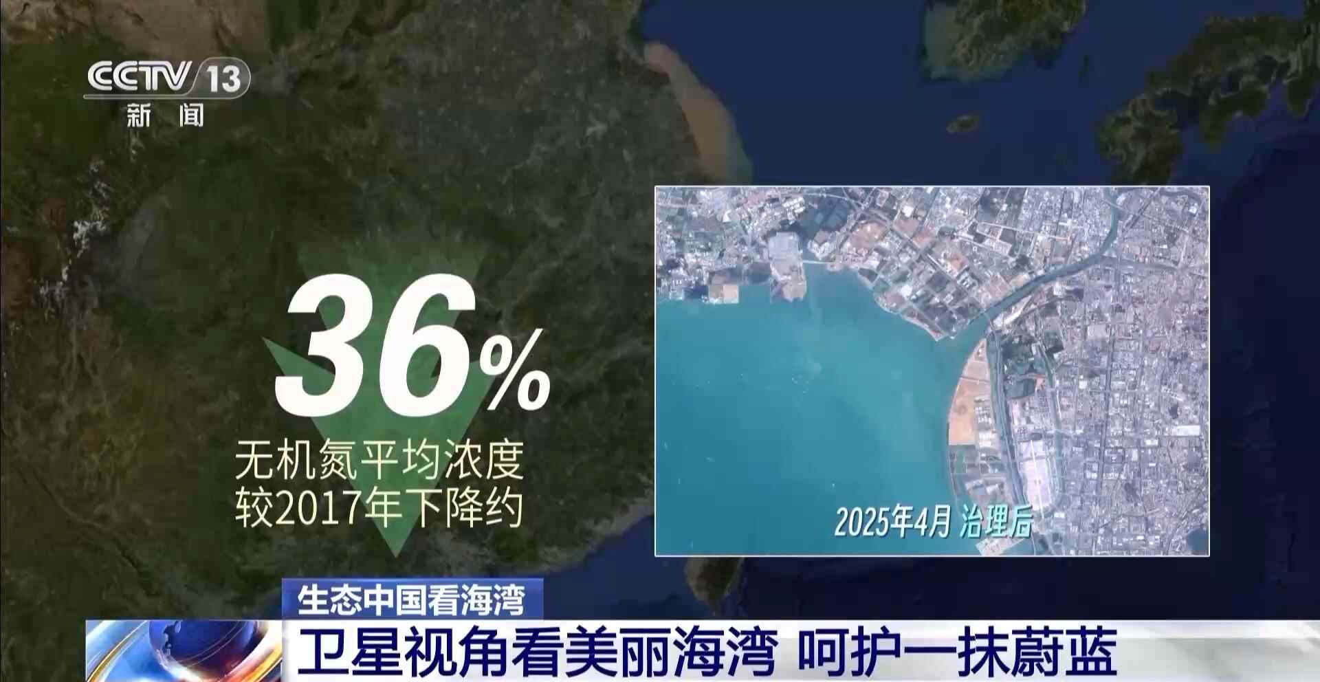 通过遥感影像对比,在山东东营黄河口湾区,繁殖力强大的外来物种——互花米草,已初步实现有效控制。在珠江口广东深圳段,海上渔排被清退,海域主要超标因子无机氮平均浓度较2017年下降近36%,风景宜人的海岸吸引游客慕名而来。