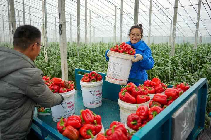 洛城街道东斟灌村是彩椒种植专业村,640座大棚鳞次栉比,彩椒年产值超过1.5亿元。“村村大棚通市场,菜多了也不怕,村头就能卖,现在一天能拉走三四车。”东斟灌村“棚二代”王春艳说。