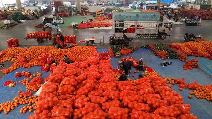 寿光每天有超过2万辆货车往来穿梭,蔬菜年交易量超过900万吨。其中,约300万吨的蔬菜交易发生在当地的龙头大市场——寿光农产品物流园。全国各地的蔬菜都在这里装配拼货,实现了冬季南菜北运、夏天北菜南销。