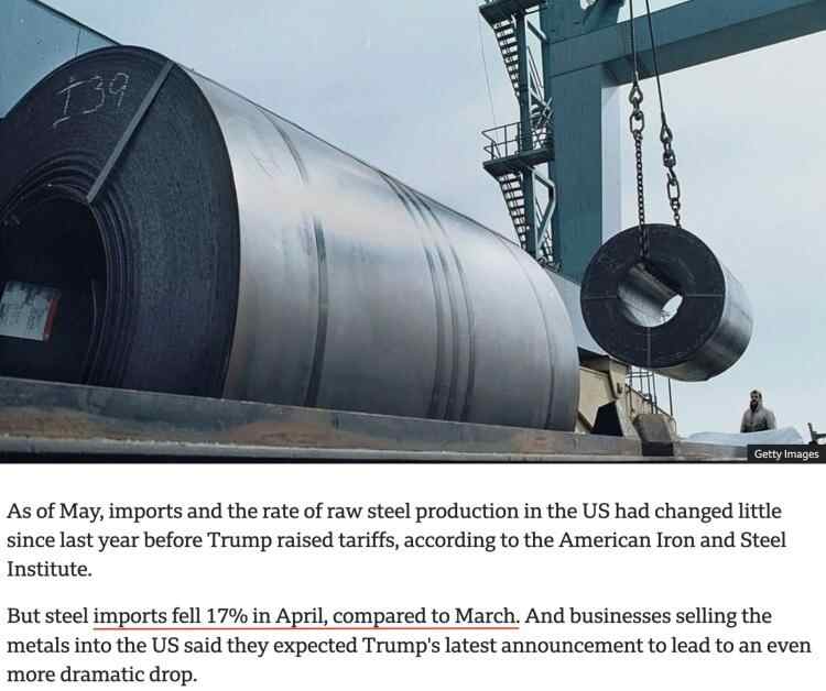 至于为什么要将税率翻倍,白宫给出的理由是——25%的关税不足以“保护”美国钢铝产业,必须进一步提高。