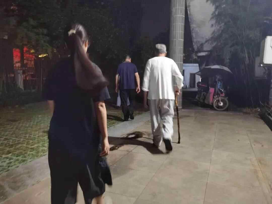 在一楼行走时,在后面拍了一张老人家的照片。他腿脚恢复得不错,但因为人太高,便显得有点驼背,背影伟岸,但也沧桑。