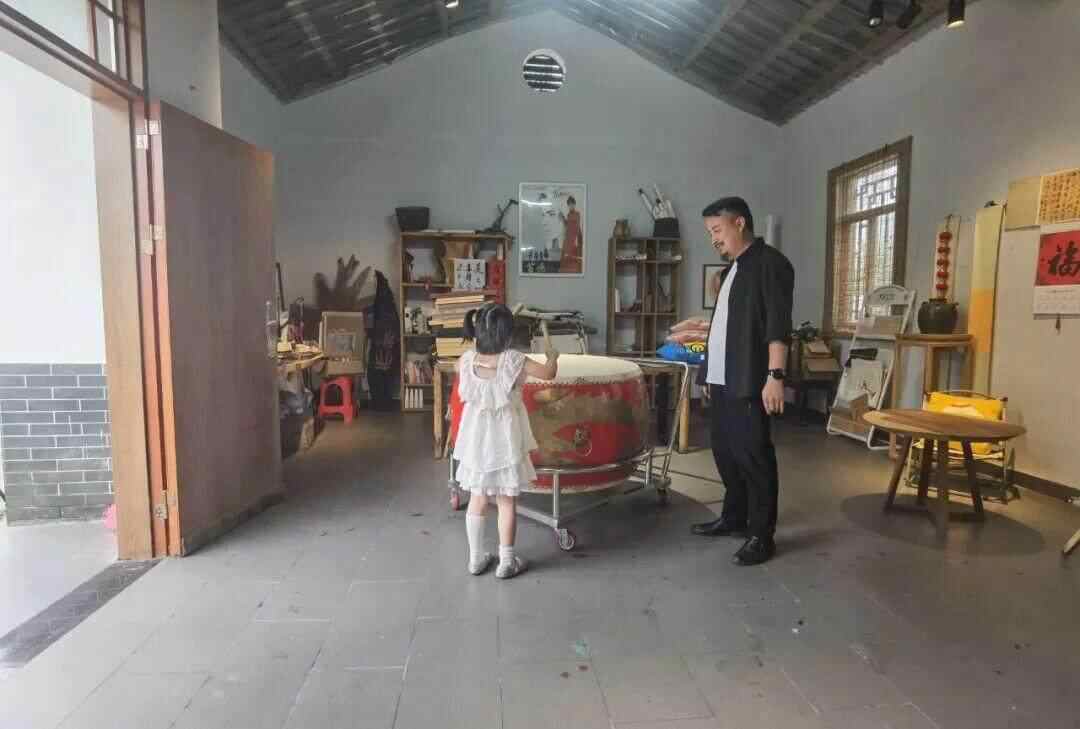 我循例先敲鼓。直北关山金鼓振,痛快,痛快!声震屋瓦。引来许多小朋友,探头探脑,跃跃欲试。鼓励他们敲了数段。