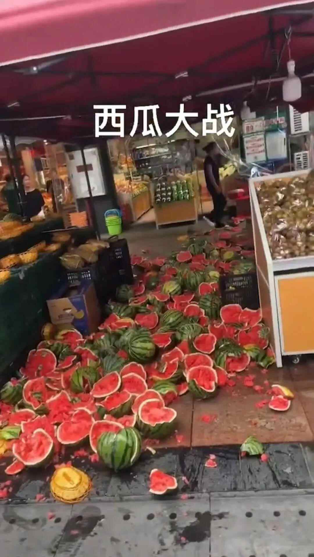 6月5日,多名网友发布视频称,重庆两家水果店起了争执,在街头上演砸西瓜大战。