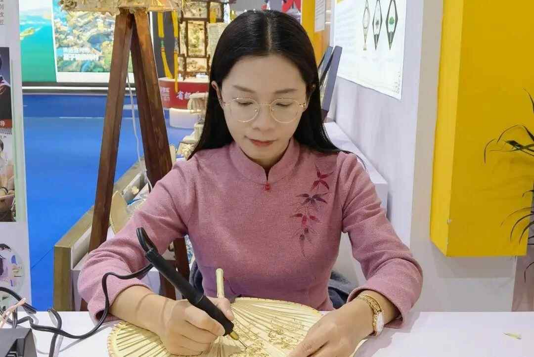 其中,焙扇是最辛苦的一环,面对火炉的高温炙烤,要不停转动手腕将蒲葵烤软定型。葵扇的灵魂,则在烙画的指尖中升华。烙笔在凹凸不平的扇面上游走,笔尖所过之处,焦痕深浅有致,或化作灵动的花鸟虫鱼,或化作侨乡的山川河流。
