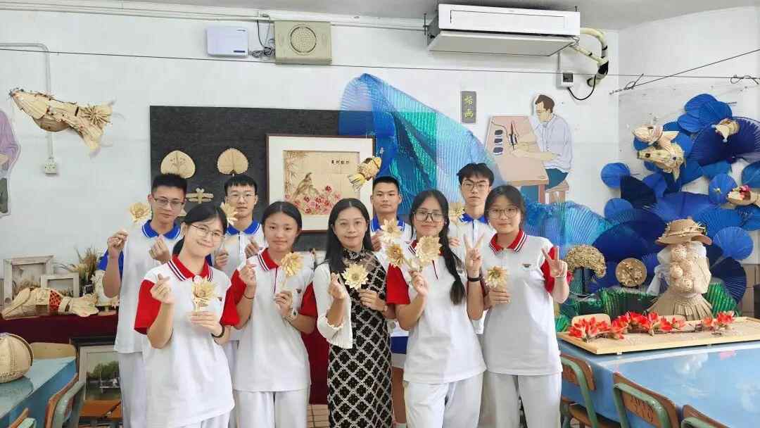 作为新会陈经纶中学的美术教师,赵琼花将葵艺带进课堂,在学校创设葵艺特色课程工作坊,编撰《新会葵艺》校本教材,引导学生们将无限的创造力融入葵艺这门传统的技艺之中。