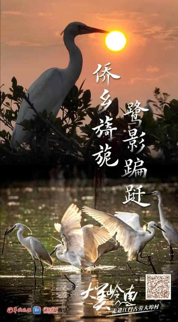 此次入选优秀案例的《视频·大美岭南|江门古劳大埠村:侨乡旖旎 鹭影蹁跹》关注鹤山古劳大埠。当地天色澄蓝如碧,水色潋滟清明,田畴凝翠含烟,林树郁葱欲滴。一方秀水净土,引得白鹭纷至沓来,栖居于此,宛如寻得心灵原乡,形成独特的“水乡鹭鸟天堂”风景。