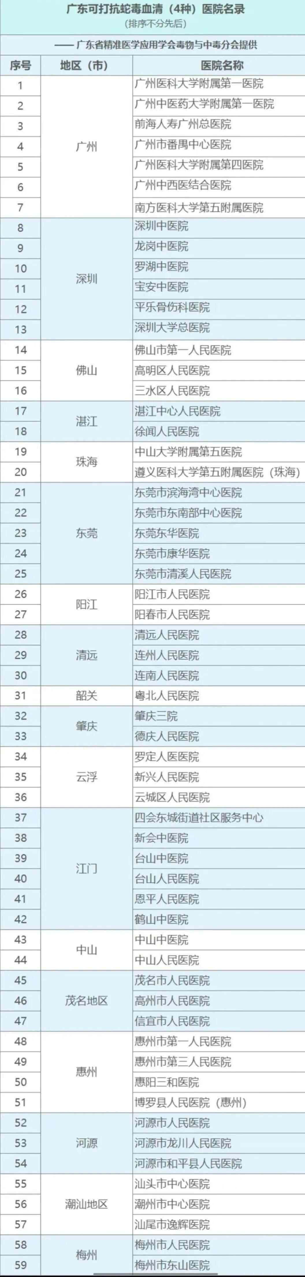 广东这些医院有抗蛇毒血清
