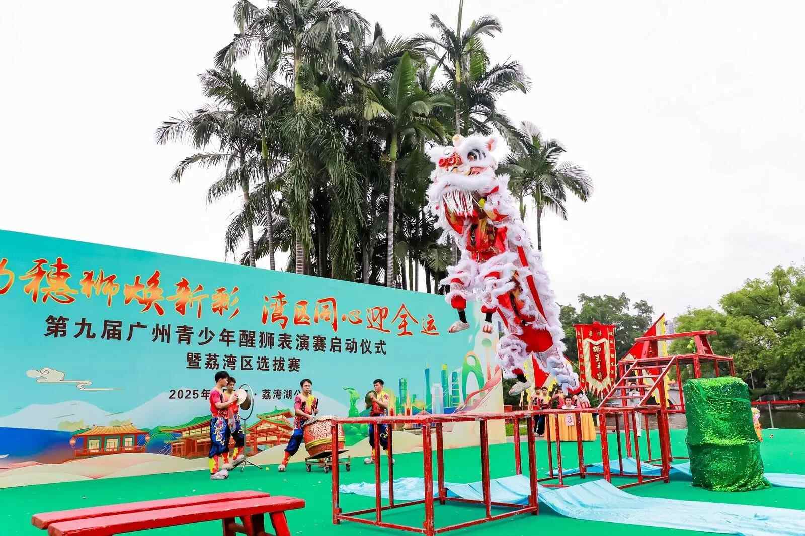 6月2日下午,第九届广州市青少年醒狮表演赛启动仪式暨荔湾区选拔赛在荔湾湖公园水上舞台举办,9支区内青少年醒狮精英队伍同台竞技。活动以“活力穗狮焕新彩,湾区同心迎全运”为主题,以国家级非遗项目广东醒狮为载体,展现广州“雄狮少年”蓬勃向上的精神风貌,助力粤港澳大湾区文化共融,为即将到来的十五运会贡献广州醒狮力量。