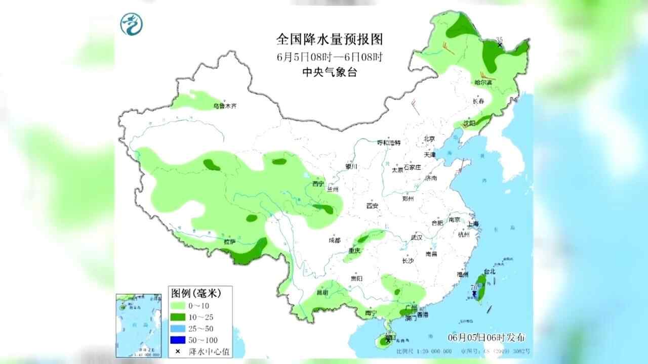 降水方面,今天我国大部地区降水较弱,广东南部、海南岛中部、台湾岛等地有中到大雨,局地暴雨;内蒙古东北部、东北地区北部和东部有阵雨或雷阵雨,局地伴有雷暴大风,公众外出需防范强对流天气危害。