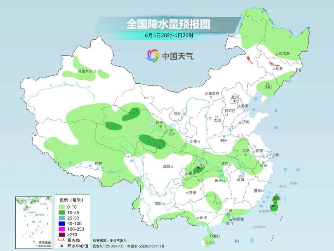 今天夜间到明天白天,我国降水总体还是维持较弱的状态。