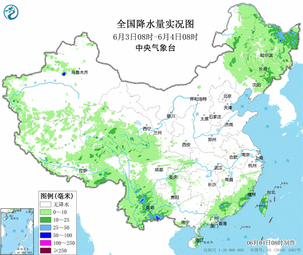 本周以来,我国降水主要分布在东北地区、西南地区以及华南部分地区,其余大部降水稀少,实况图都是这样的↓↓