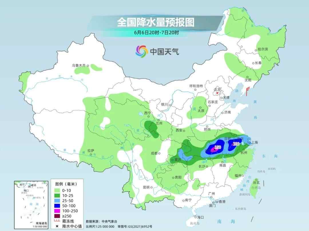 这次过程中,湖北东部、江西北部、安徽南部、浙江西北部、江苏南部、上海一带为降雨核心区域,6日至10日累计降雨量将达到80至160毫米,局地220毫米以上。