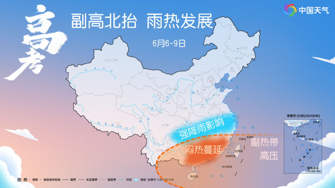 明后天,江南、华南高温增多,长沙、南昌可能迎来今年首个高温。之后随着降雨增强,长江沿线及江南等地将陆续出现降温,最高气温降至30℃以下。但华南一带由于副热带高压的影响,闷热持续,部分地区还将出现高温。