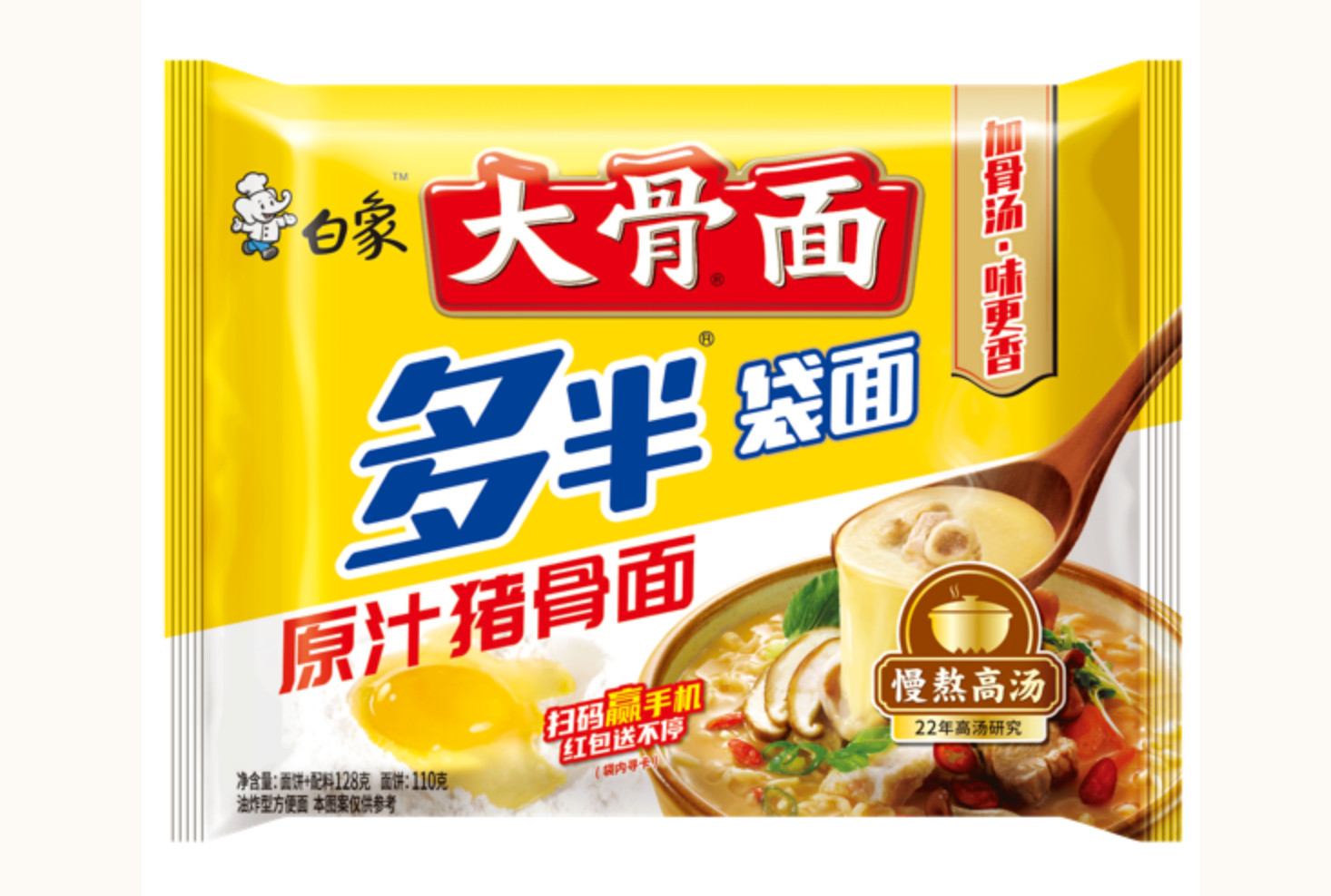 近日,有多位网友发帖称,白象“多半袋面”系列产品背后包装上显示,“多半”是白象食品股份有限公司的注册商标。网友讽刺道:“买的时候以为是‘多半袋’面,买回来后才发现是‘多半’袋面,每天上一当,当当不一样。”