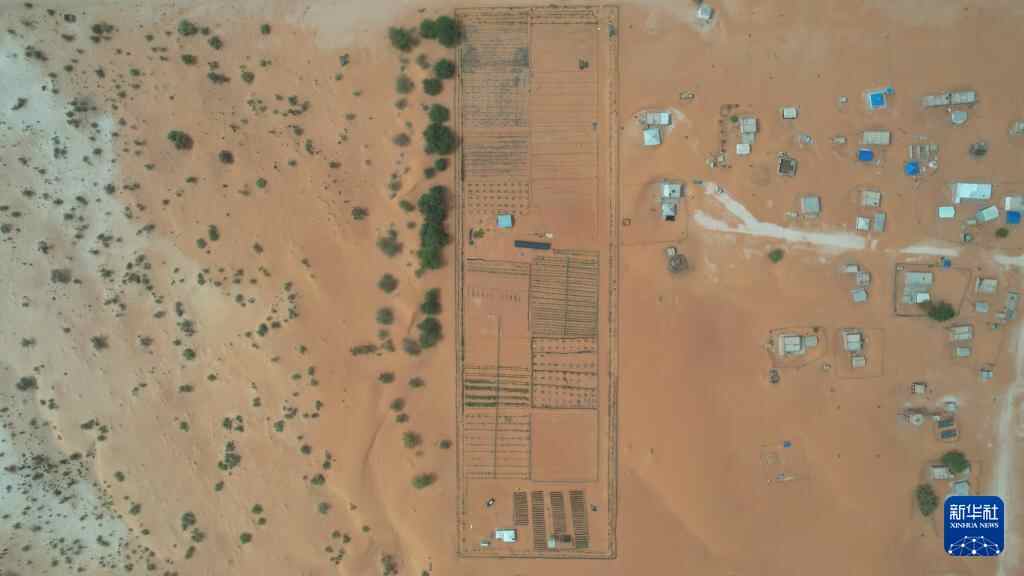 这是5月22日拍摄的位于毛里塔尼亚西部特拉扎区比尔·巴尔卡村的中非绿色技术公园(无人机照片)。新华社记者 司源 摄