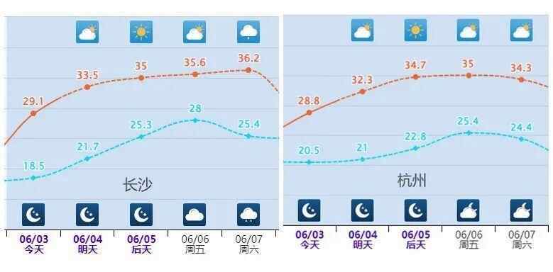 6月4日起,华南到江南等地气温回升,5日高温也将增多。像是长沙、杭州都可能出现当地今年首个高温。