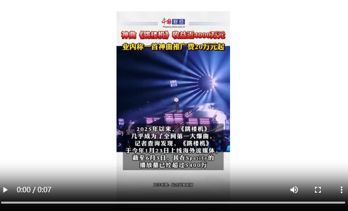 2025年以来,《跳楼机》几乎成为了全网第一大爆曲,记者查询发现,《跳楼机》于今年1月23日上线海外流媒体,截至6月3日,其在Spotify的播放量已经超过5400万。一位博主透露,《跳楼机》这首爆款歌曲收益在3000-4000万。