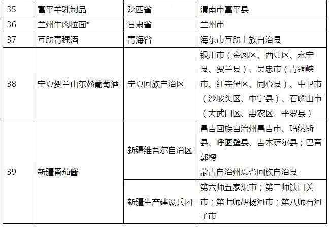 传统优势食品产区和地方特色食品产业重点培育名单(第一批)