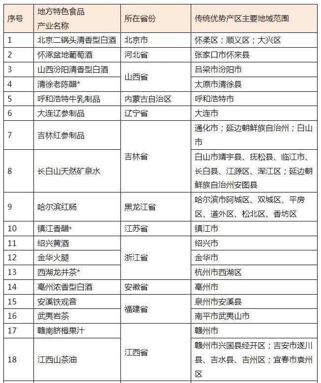 注:标*地方特色食品产业已纳入工业和信息化部“首批中国消费名品名单”。