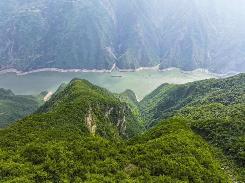 长江巫峡段的绿水青山(2024年5月16日摄)。从永川区朱沱镇入境,到巫山县巫峡口出境,长江干流重庆段全长约691公里,出境断面总磷污染物浓度已连续7年优于入境断面。新华社记者王全超摄