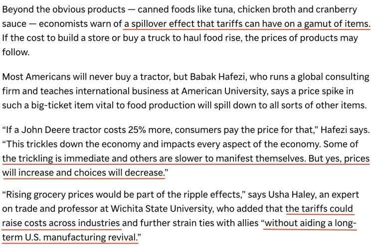 除了罐装食品等显而易见的产品外,经济学家还警告称,钢铝关税上调对一系列产品可能产生的溢出效应也将最终影响到食品价格。