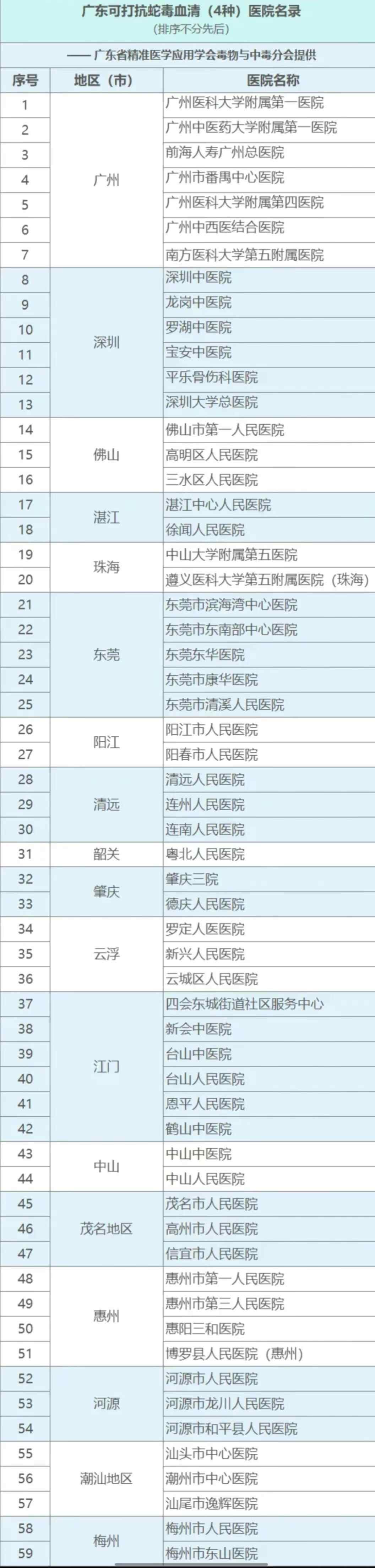 广东哪些医院可以打抗蛇毒血清?转存这份广东可打抗蛇毒血清医院名录(部分)(以各医院实际情况为准)⬇️⬇️⬇️