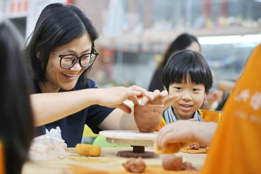 图为在浙江省嘉兴博物馆,南湖实验学校万兴校区一年级小学生和家长一起参加“泥塑悟非遗,亲子迎端午”泥塑制作活动。新华社发(金鹏 摄)