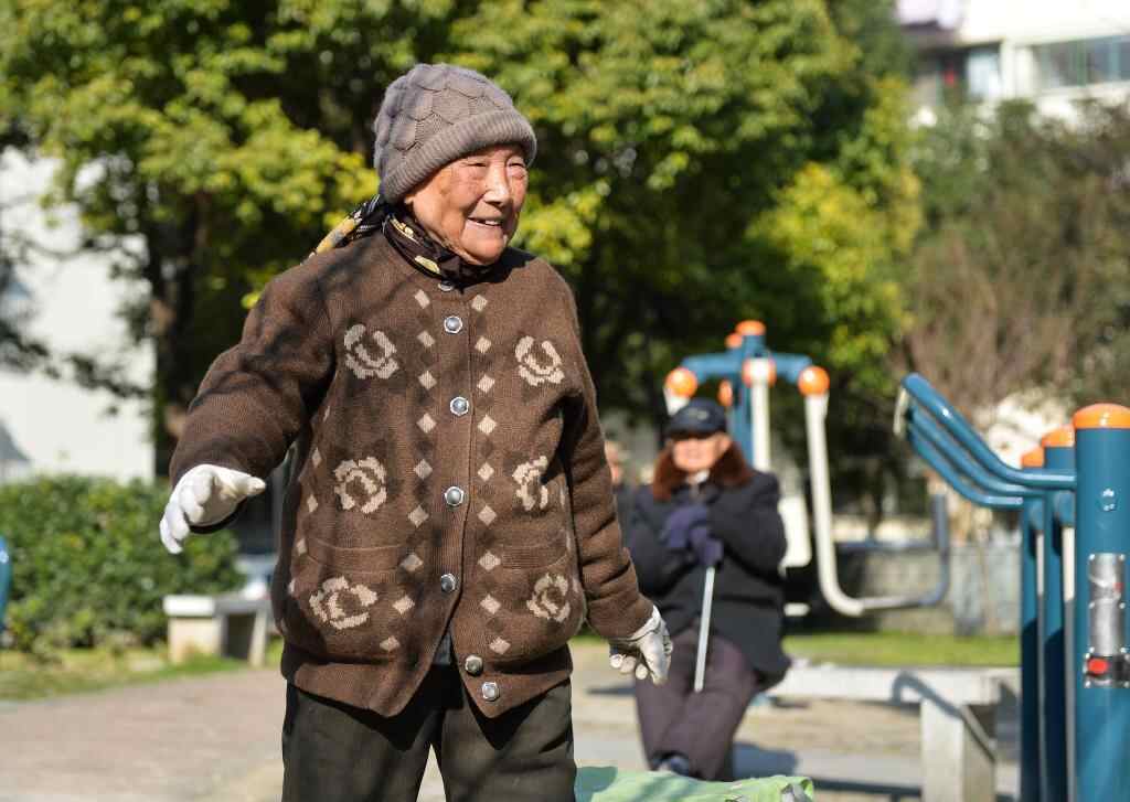 ↑2017年1月14日,夏淑琴在南京小区院子里锻炼身体。