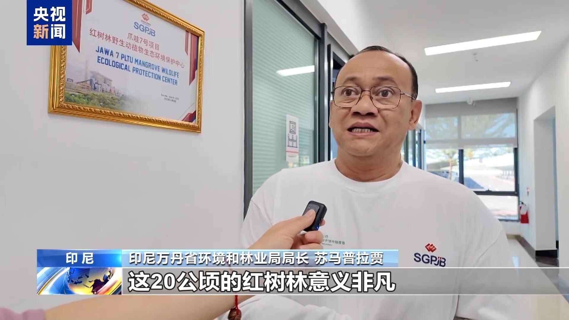 总台记者 李琳:我现在所在的位置是印尼(单机容量)最大的火力发电厂。我现在所在的这个平台有80米高。从我身后大家可以看到一大片红树林和电厂是和谐共生。那么在最开始,这片红树林只有5公顷的面积,而随着企业不断地种植,现在已经达到了20公顷。