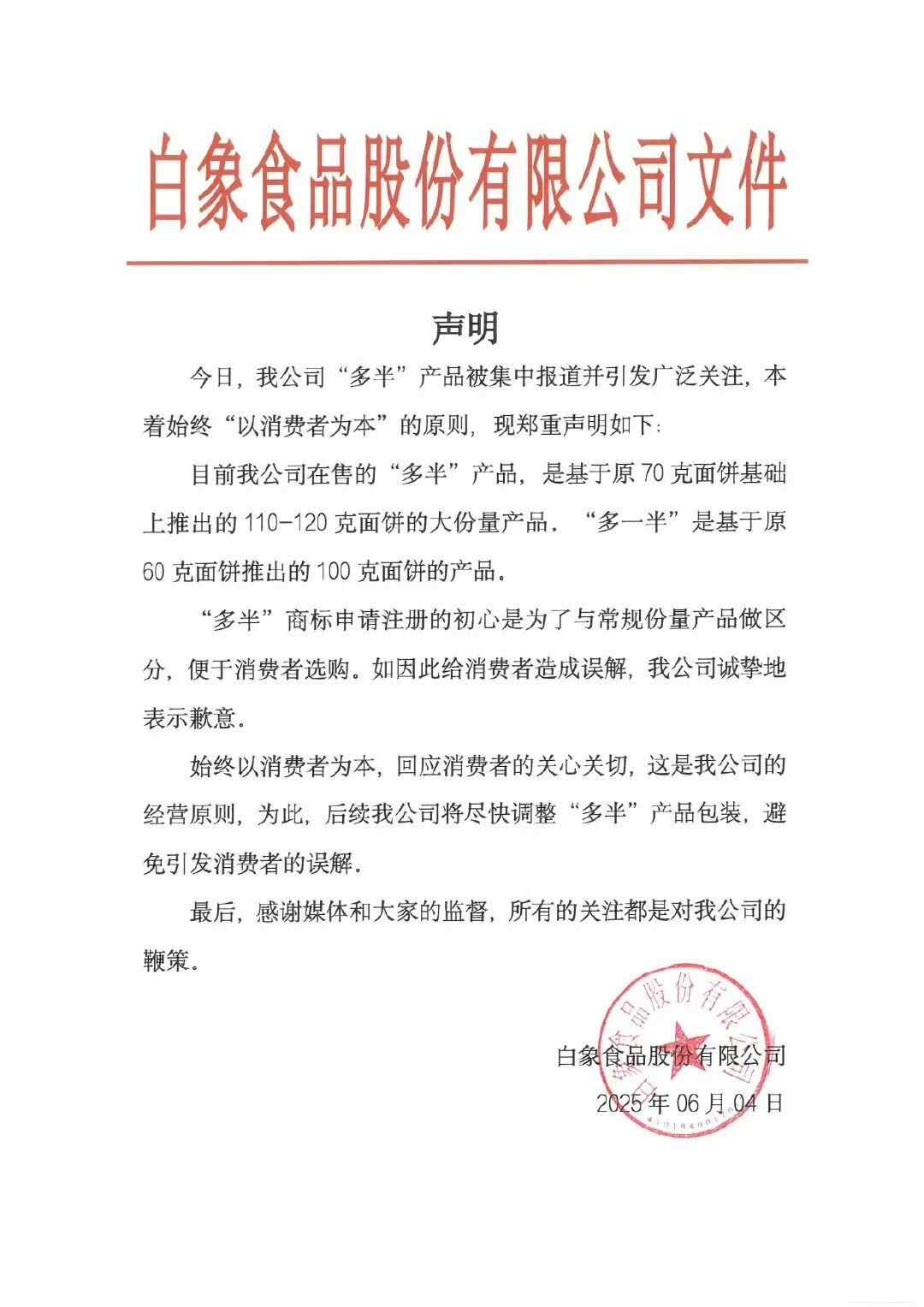 今日,我公司“多半”产品被集中报道并引发广泛关注,本着始终“以消费者为本”的原则,现郑重声明如下:
