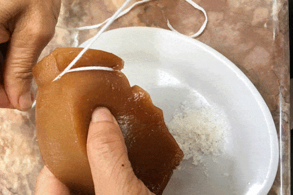 吃的时候用纱线切割,将栀粿截成小片,蘸着白砂糖。甘中带苦的栀子味混着白糖和糯米香,成为潮汕人端午节的标志滋味。
