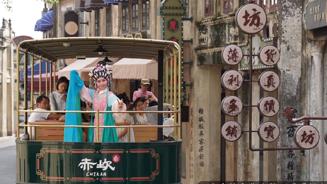 在这里,可以乘着铛铛车穿越中西合璧的百年骑楼群,可以坐上摇橹船游古村水乡。