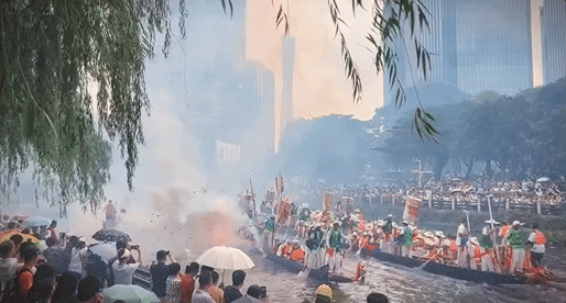 正逢端午,广东各地的龙舟队火力全开,龙舟劈波斩浪,号子声、锣鼓声、击水声、助威声交织,热闹非凡。