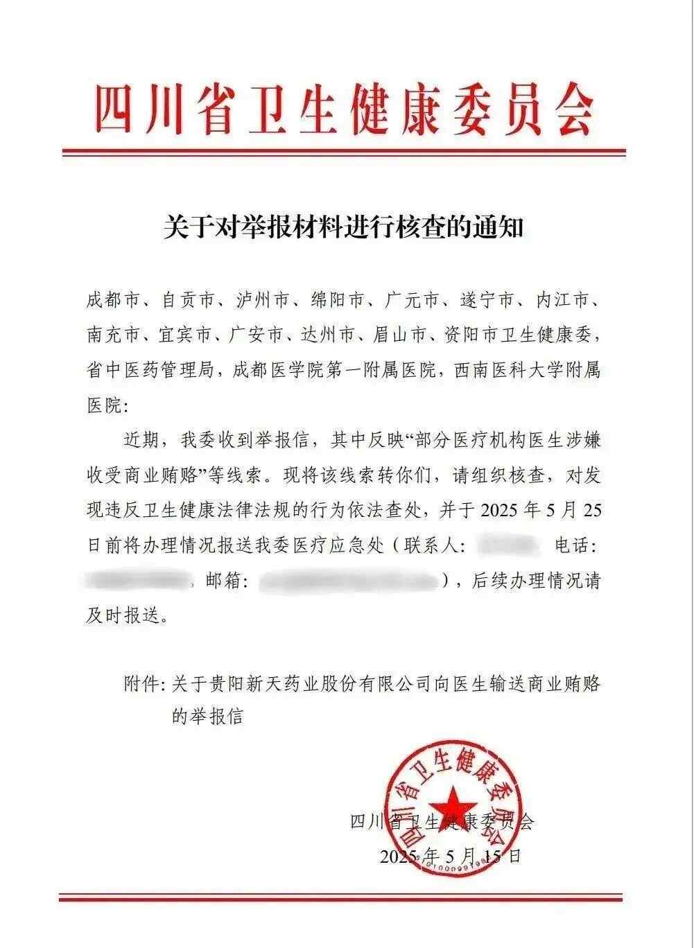 5月31日,四川省卫健委调查组通报“某药企涉嫌向医生输送商业贿赂”调查情况,全文如下: