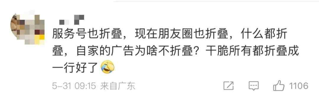 有网友认为,与其折叠朋友圈,不如解决朋友圈里被推送的广告。