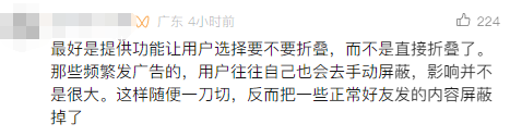 也有网友说,与其折叠朋友圈,不如解决朋友圈里被推送的广告。