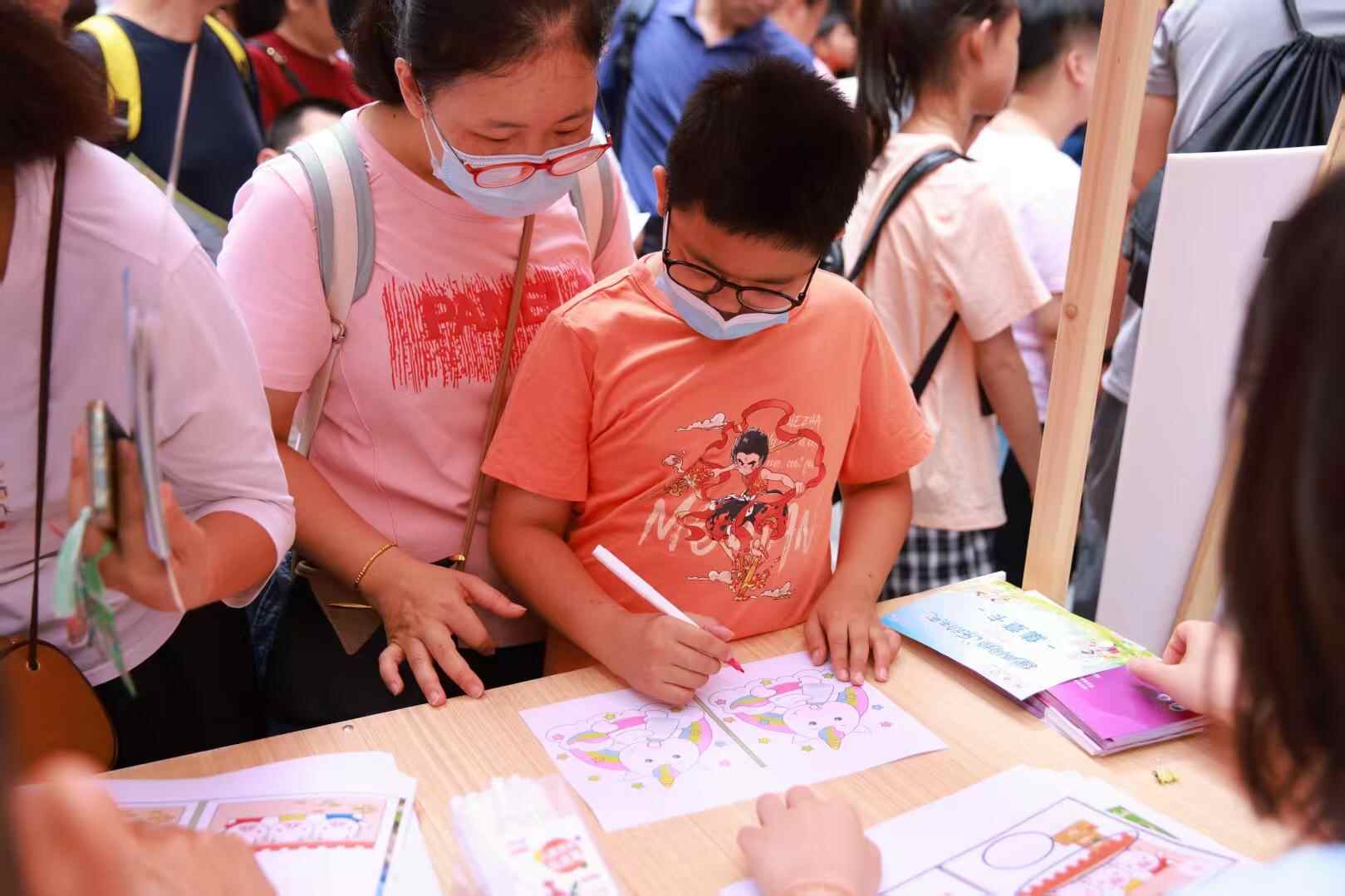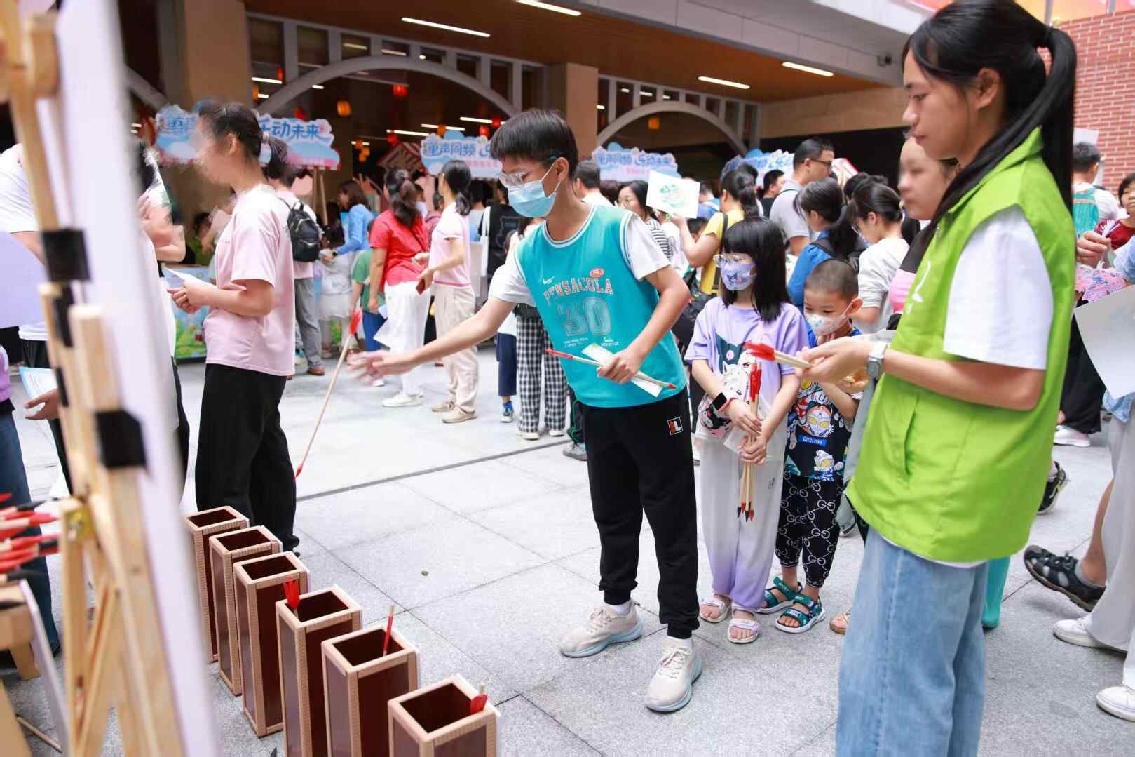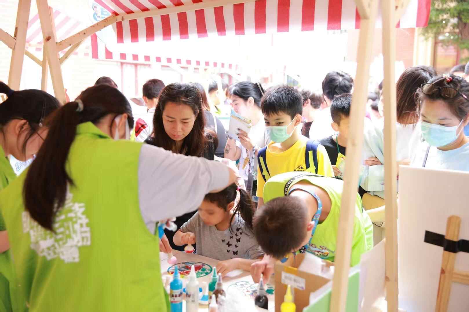 剧院外的广场上,还精心设置了创意手工嘉年华,包含儿童福利政策宣传、非遗漆染、窗花拓印、乐高七巧板、扭扭棒DIY等七大摊位。