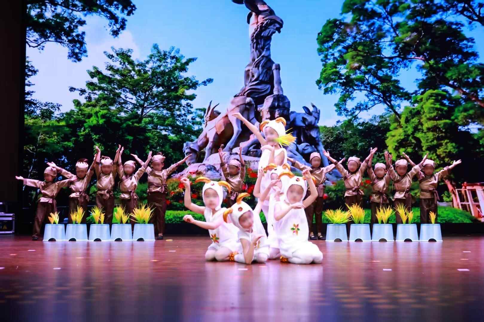 聚光灯下,小小舞者们化身农民和仙羊,用舞蹈《五羊献瑞》重现了广州五羊传说的经典故事,展现了孩子们坚韧不拔、勇往直前的精神风貌。欢呼声中,非洲鼓、尤克里里、口风琴、萨克斯……各种旋律和节奏将所有人的心连接在一起。