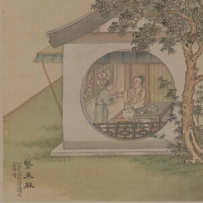 △《系采丝》,题:“以五色丝系臂,谓之长命缕。”