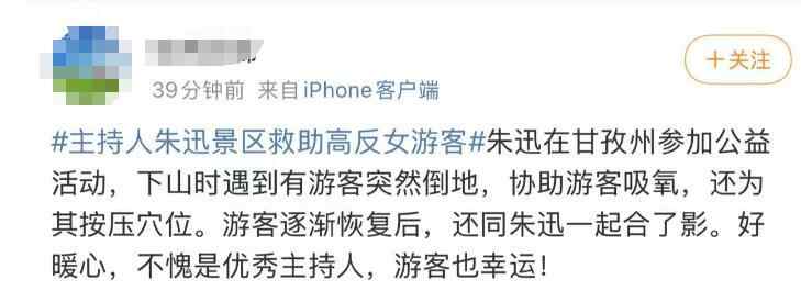 网友们纷纷为朱迅的暖心救助点赞“又专业又热心,妥妥的正能量担当”“人美心善,骨子里的修养和温度”。