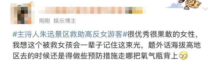 “给女游客吸氧的时候,朱迅老师也在帮其按摩穴位,女游客两三分钟就缓和过来了。”该工作人员介绍,那名女游客可能是有一些高原反应,事后,女游客还和朱迅拥抱、合影,“合影时朱迅老师握着女游客的手,当时我就在现场,全程记录下来了。”