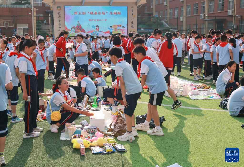 5月29日,山东省临沂市金雀山小学学生参加校园跳蚤集市。