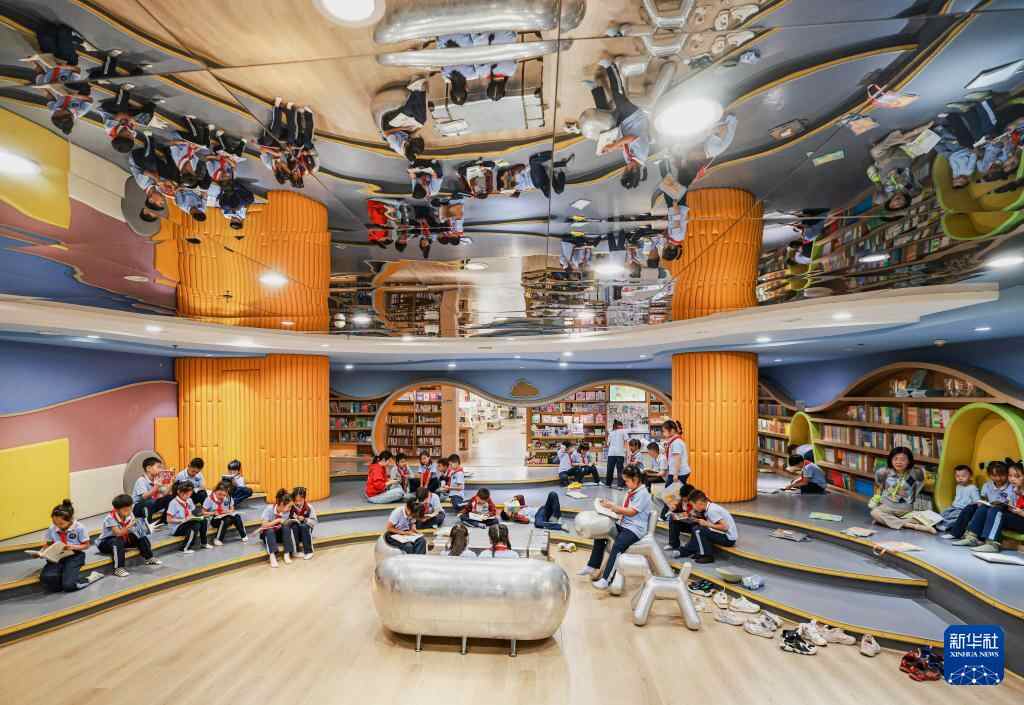 5月29日,孩子们在山东省荣成市新世纪城市书房阅读。