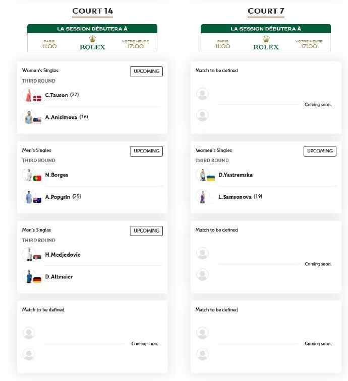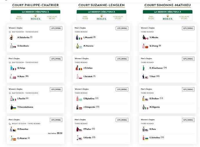 2025法国网球公开赛上半区第三轮今日(5月30日)开打,今天17时,郑钦文将面对势头正盛的加拿大18岁小将姆博科,冲击16强。后者自资格赛打起连胜5场且一盘未丢,首次参加大满贯赛事即打进32强。另外,萨巴伦卡、鲍里妮、斯瓦泰克出战,莱巴金娜对决奥斯塔彭科。