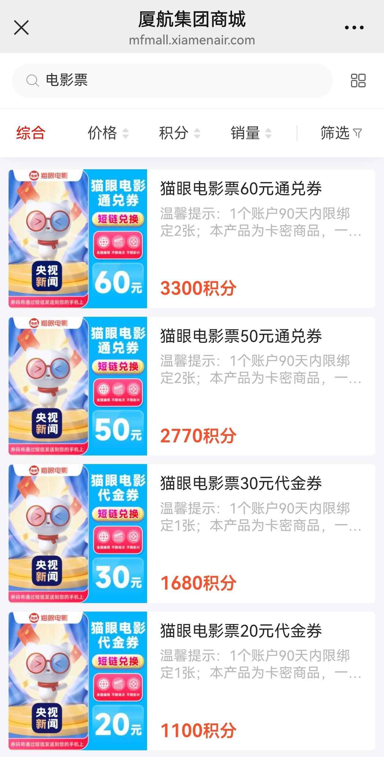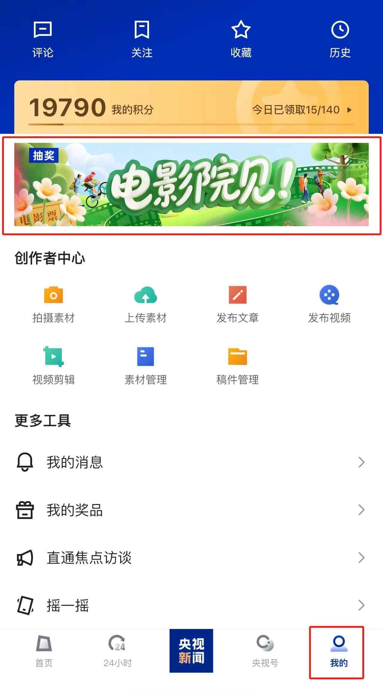打开央视新闻客户端,选择页面中“我的”,点击“电影院见”专题页,进入“厦航积分兑换电影票”,即可选择电影票代金券进行兑换。